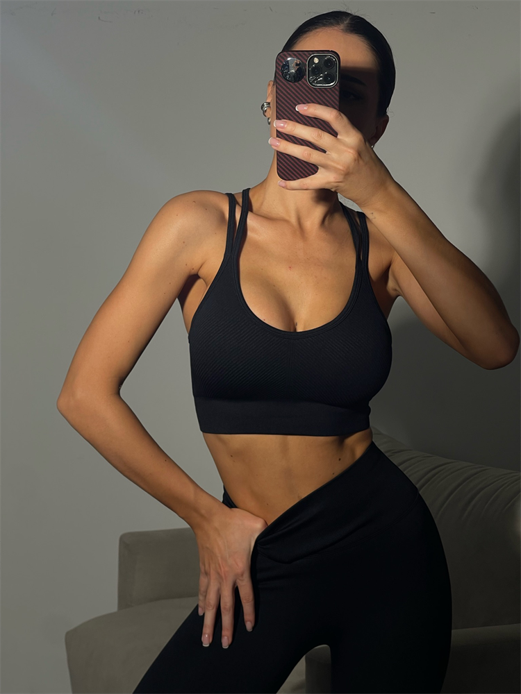 Тонкие лямки на спинке аккуратно пересекаются, тем самым обеспечивают надежную фиксацию топа на телеи красиво подчеркивают контуры спины, добавляя образу легкость и элегантность. Открытая спина помогает поддерживать оптимальную вентиляцию и комфорт даже во время интенсивных тренировок. Этот дизайн отлично сочетается с различными видами спортивной одежды, а также с летним гардеробам и в образе с джинсами.